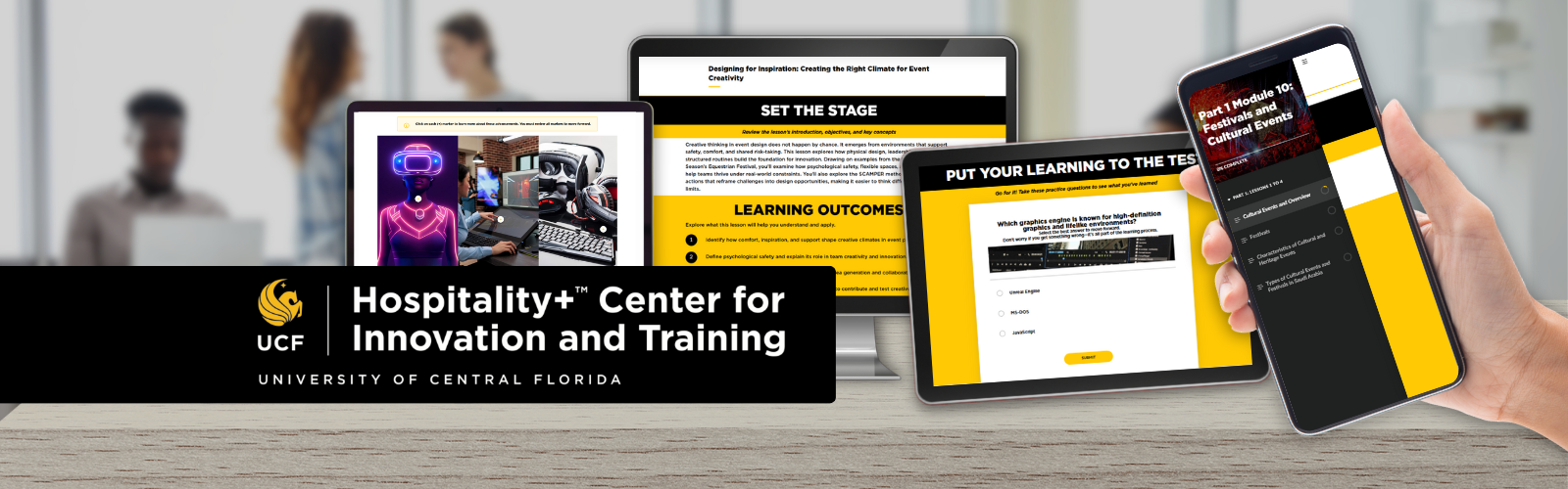 The Hospitality+TM Center for Innovation and Training at UCF’s Rosen College pioneers a new era of hospitality education. Rooted in research and powered by innovation, our Center designs e-learning experiences that are student-centric, tech-forward, and deeply immersive. We go beyond hospitality’s traditional borders, bridging sectors like healthcare, cultural policy, tourism, and entertainment to prepare the next generation of global professionals.